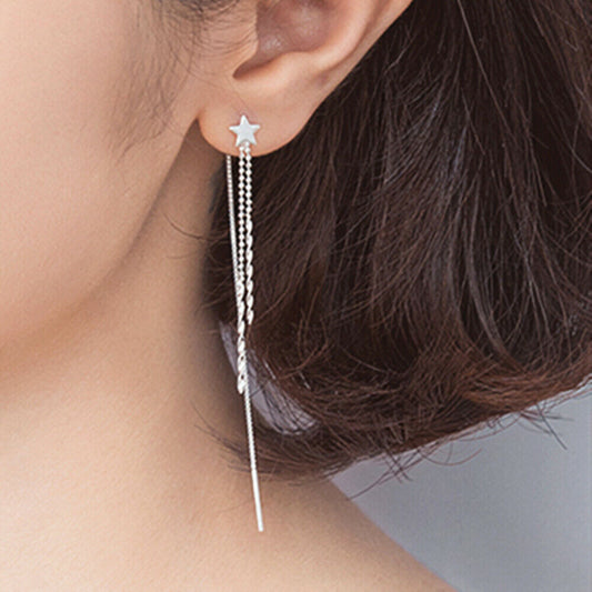 Wavy Tassel Earrings with Sterling Silver Star Beads and Pull-Through Threader Backs