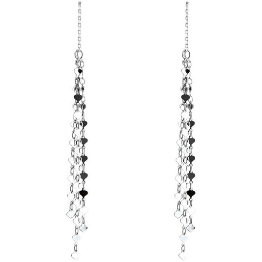 Sterling Silver Cascading Heart Threader Earrings - Long Pull Through