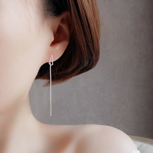 Sterling Silver Long Line Bar Pull Through Threader Drop Earrings TRACE Chain