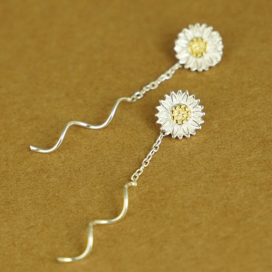 Sterling Silver Threader Earrings with Twisted Teardrop Spirals