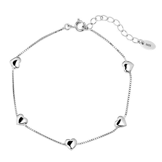 • Love Hearts Bracelet in Rhodium Plated Sterling Silver with Box Chain - sugarkittenlondon