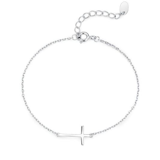 Sterling Silver Horizontal Sideways Layer Cross Bracelet Anklet