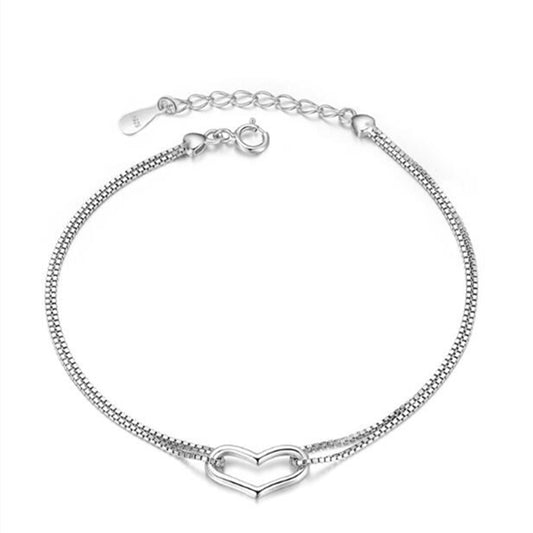 Rhodium on Sterling Silver Floating Love Heart Bracelet with Double Box Chain