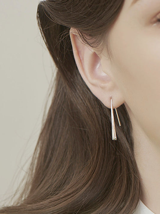 925 Sterling Silver Vertical Wavy Vine Line Swirl Bar S Drop Dangle Hook Earrings