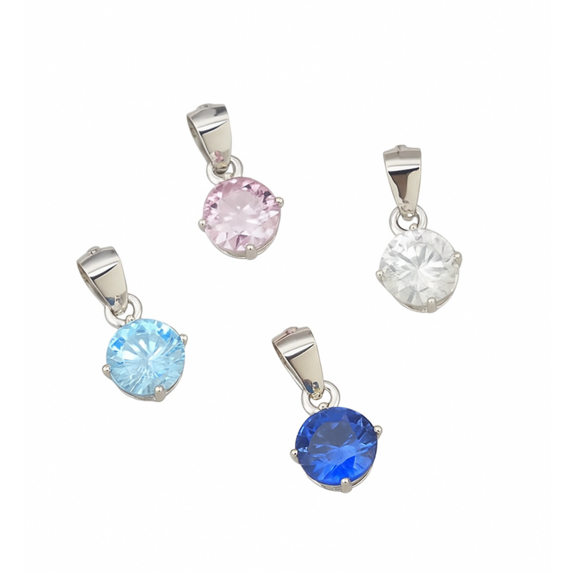 Sterling Silver 6mm Cubic Zirconia Diamanté Pendant Necklace Clear Pink Blue Topaz Sapphire Blue