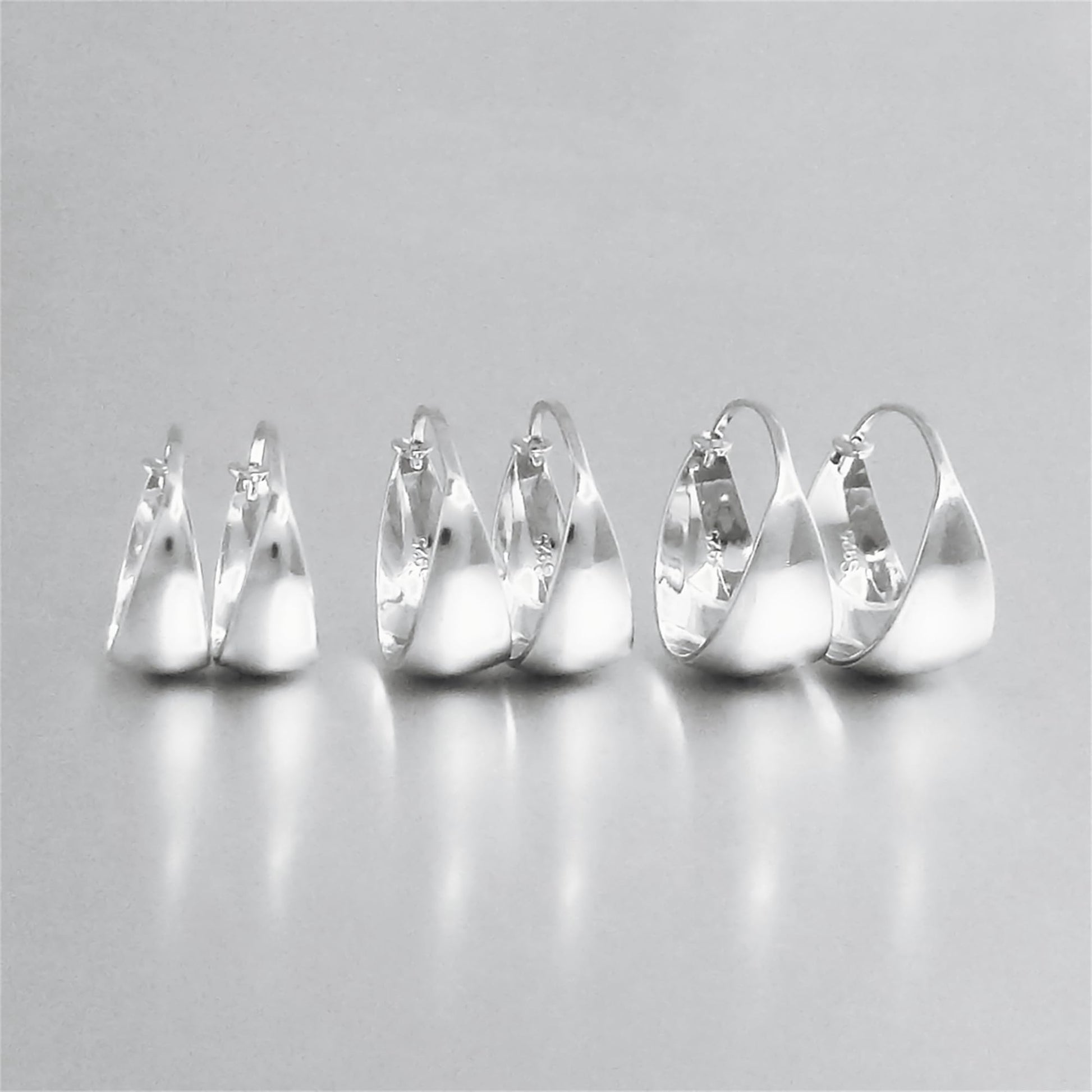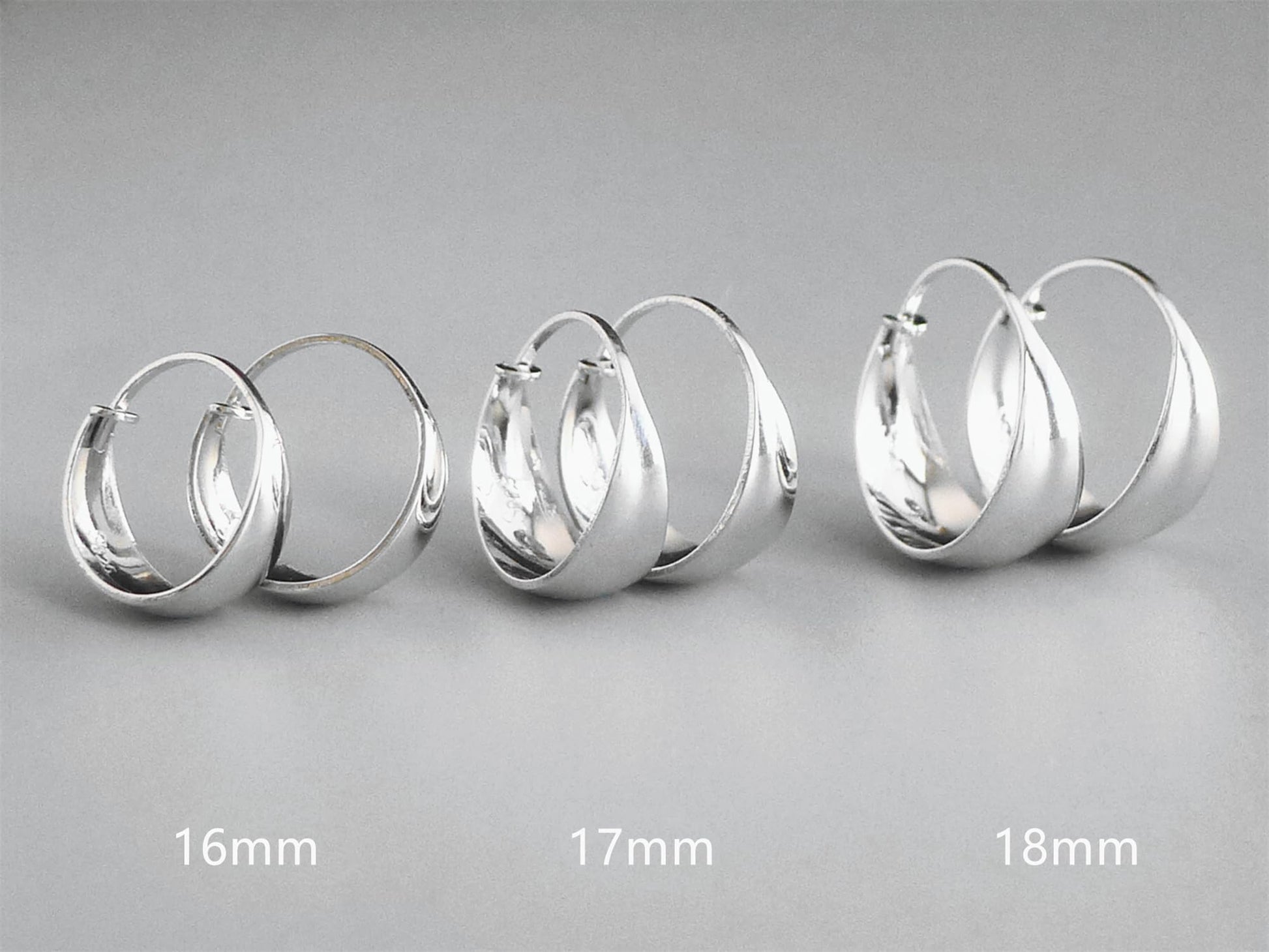 Rhodium on Sterling Silver Wide Crescent Sleeper Drop Hoop Huggie Dome Earrings 16 -18mm Boxed ITEM SPECIFICS: Earrings Size: 18mm inside diameter, 10mm widest, 3.8g /pair 17mm inside diameter, 8mm widest, 3.5g /pair 16mm inside diameter, 7mm widest, 2.64g /pair Metal: Solid 925 Sterling Silver Stamped Surface: Rhodium Plating