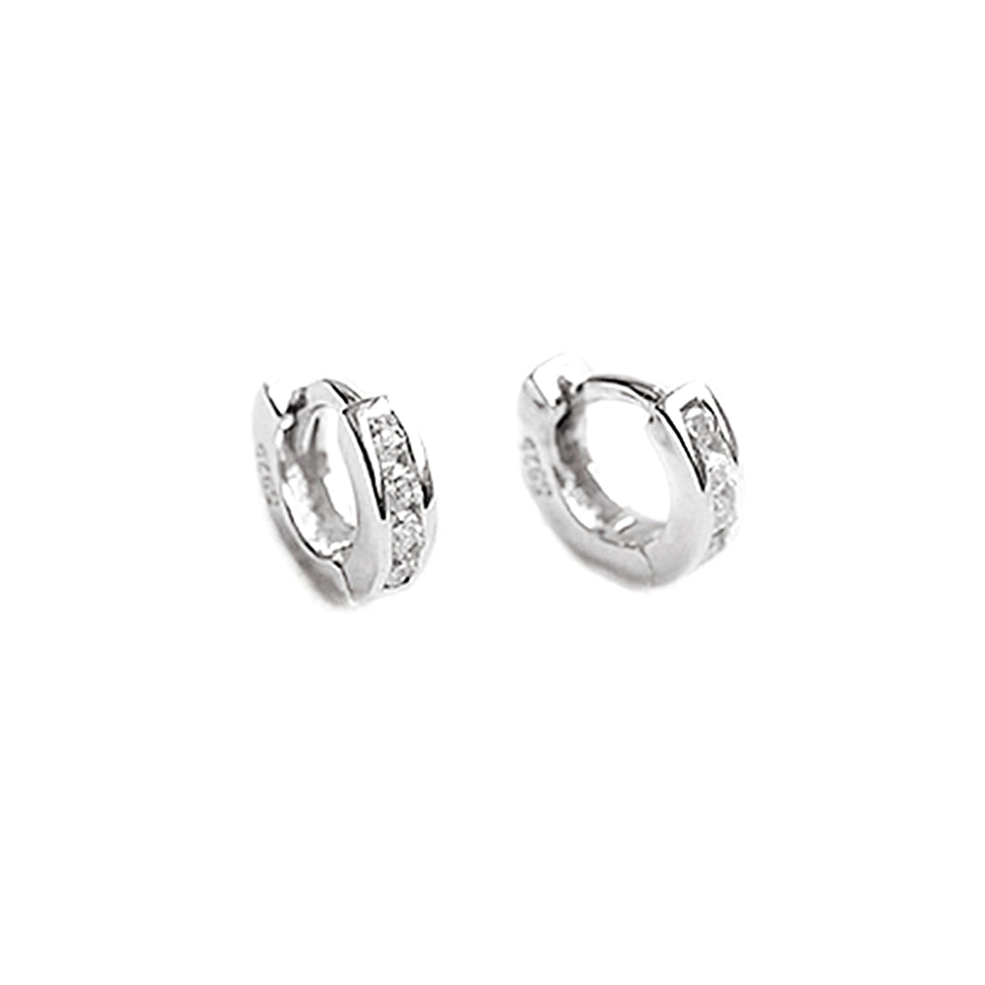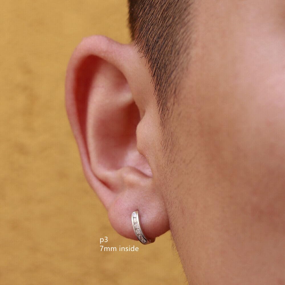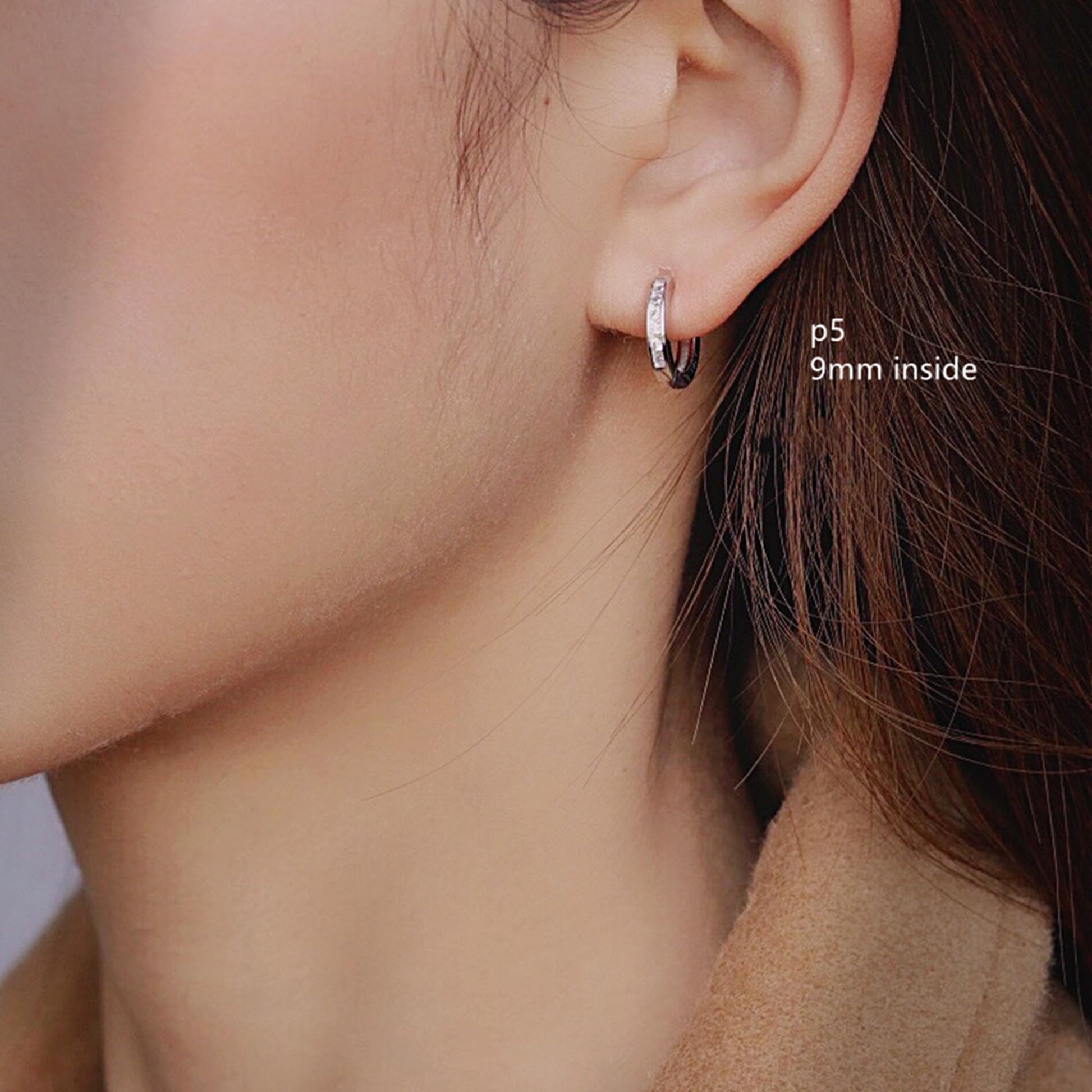 Sterling Silver 5-9mm Hoop Channel CZ Huggie Hinged Cuff Half Eternity Unisex Earrings - Gift Boxed P1: 5mm inside, 7.5mm outside, 1.8mm band P2/G2/RG2: 5.5mm inside, 9mm outside, 2mm band P3/G3: 7mm inside, 10.5mm outside, 2mm band P4: 8mm inside, 11mm outside, 2.2mm band P5/G5: 9mm inside, 12.5mm outside, 2mm band Metal: sterling silver stamped Surface: P - Rhodium(Platinum); G - 18K Gold; RG - Rose Gold