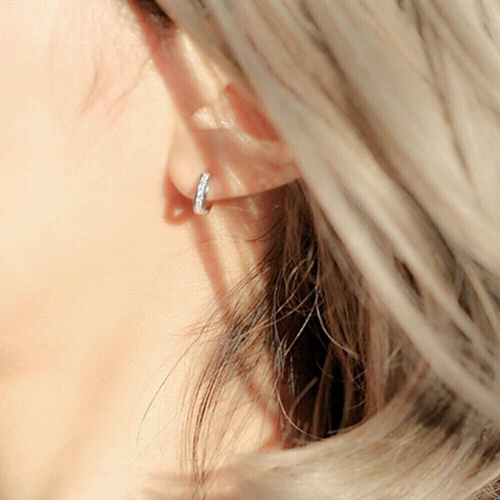 Helix piercings, located along the upper cartilage of the ear, look chic with smaller hoops. An inside diameter of 5-6mm keeps the hoop snug against the ear, adding a subtle yet stylish accent.