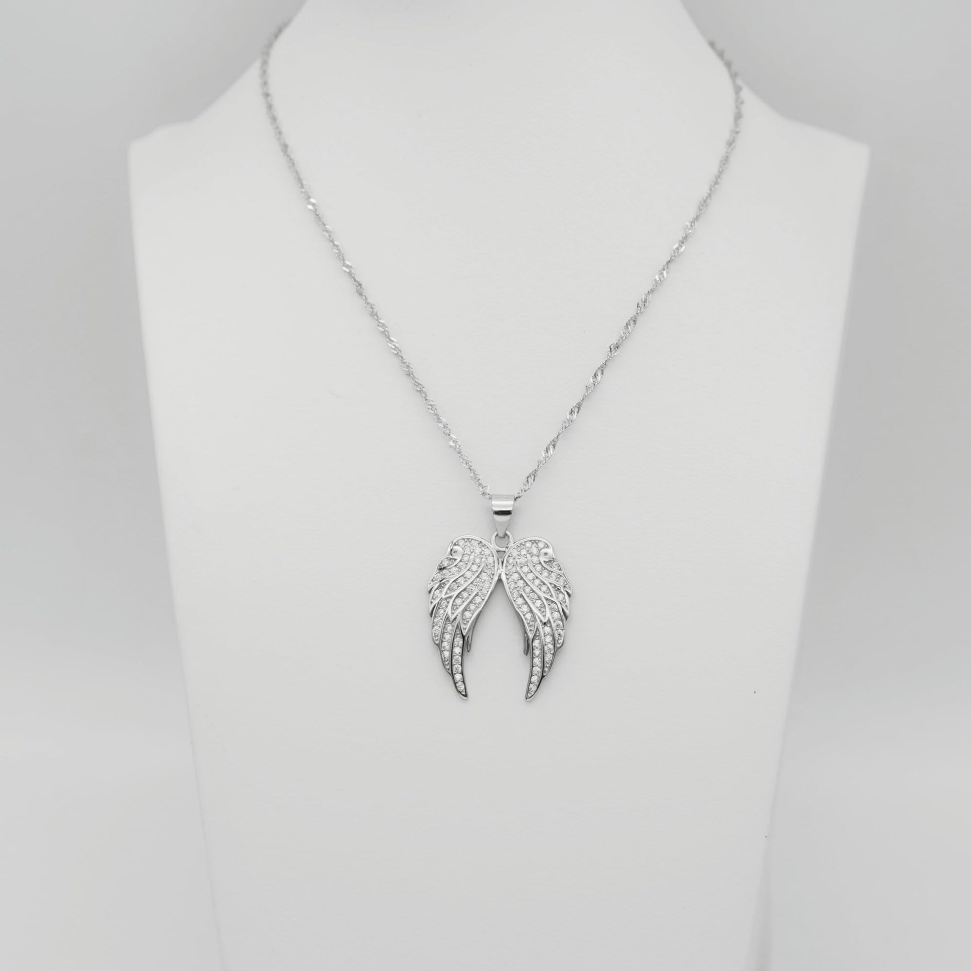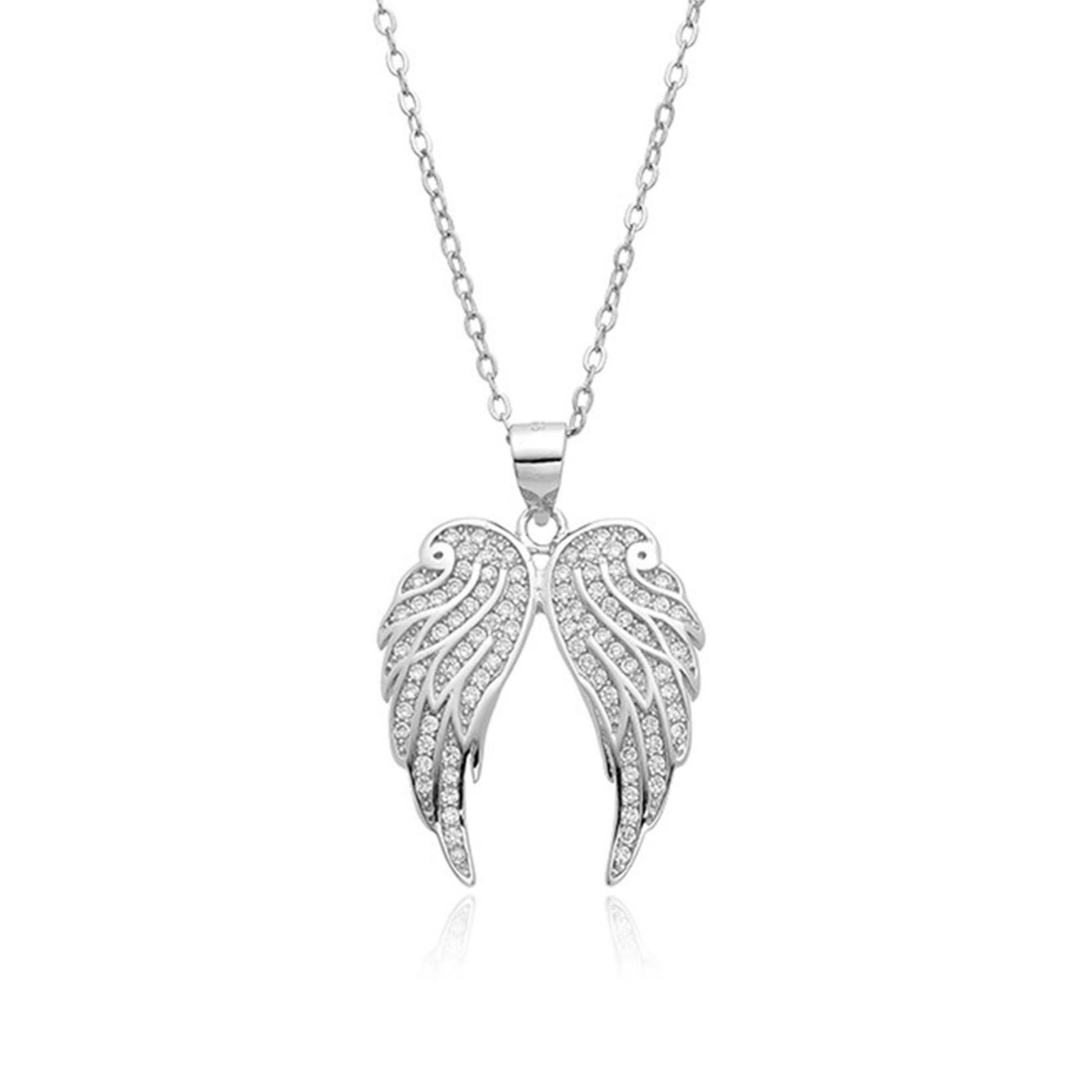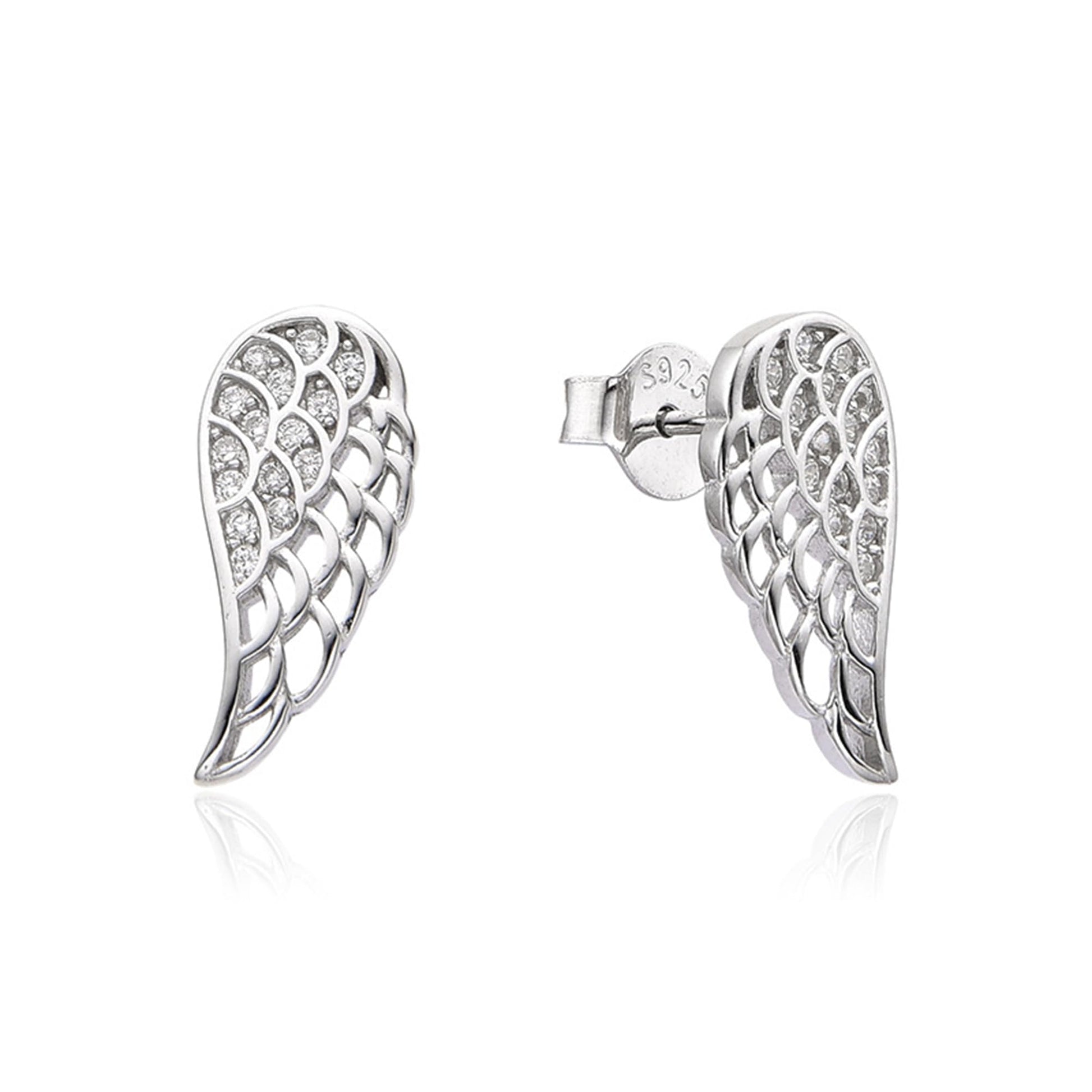 Sterling Silver Angel Feather Wing Earrings & Pendant Set with Paved CZ Stone