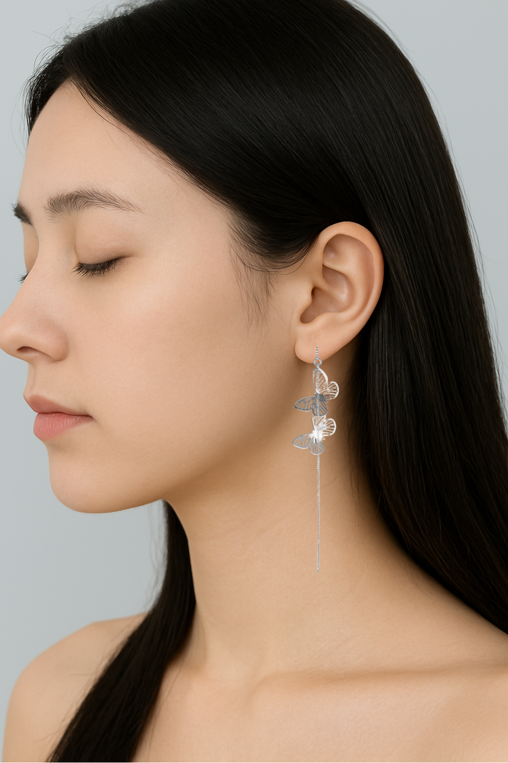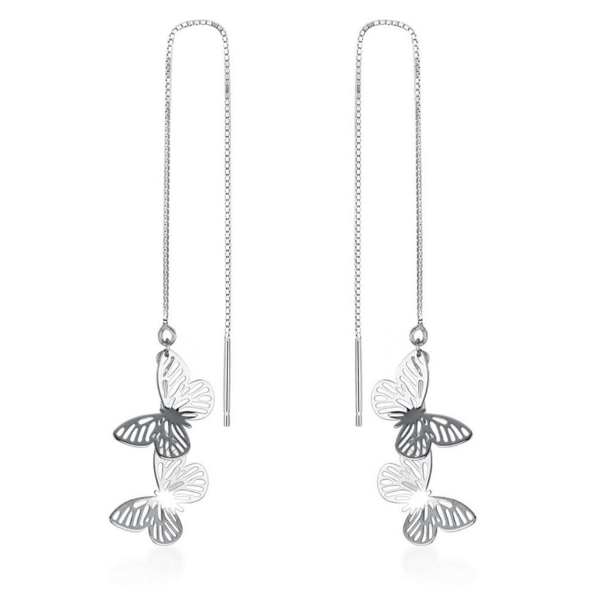 Sterling Silver Butterfly Light Dangle Drop Pull Through Threader Earrings