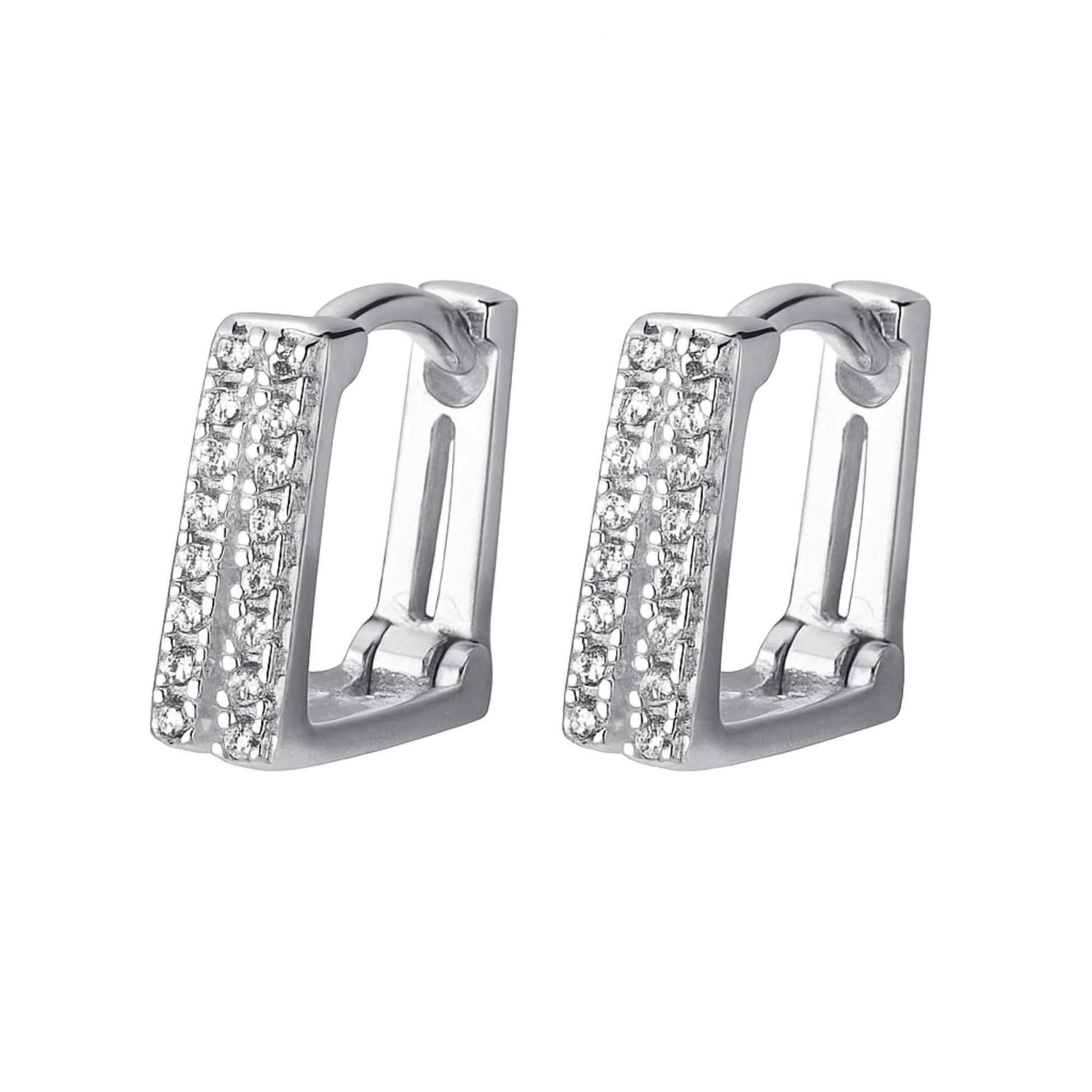 Sterling Silver Double Line Square Paved CZ Cuff Hoop Earrings Unisex Boxed