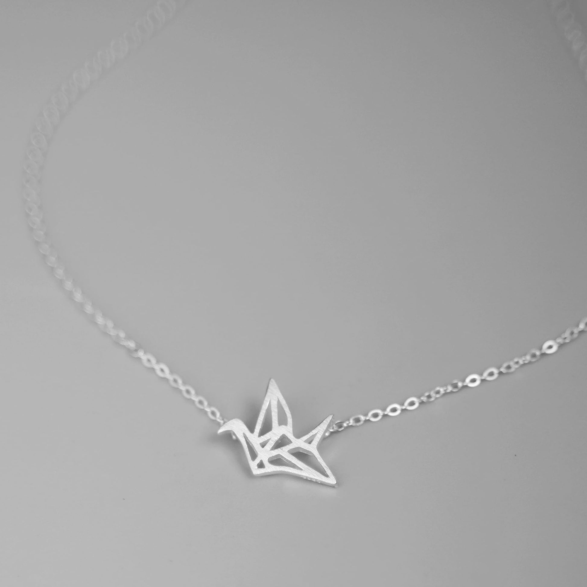 Sterling Silver Matte Brushed Origami Crane Bird Charm Pendant Necklace Boxed