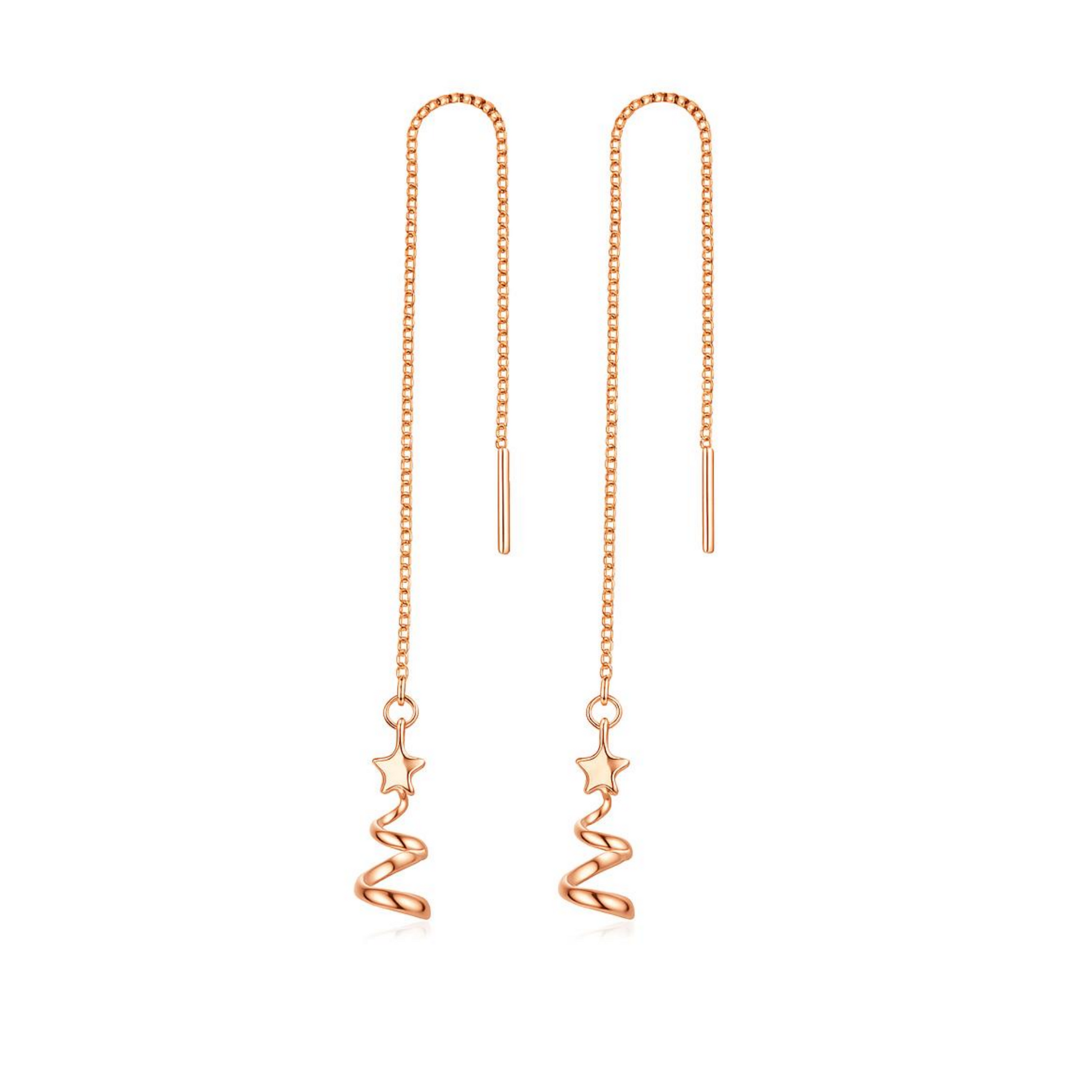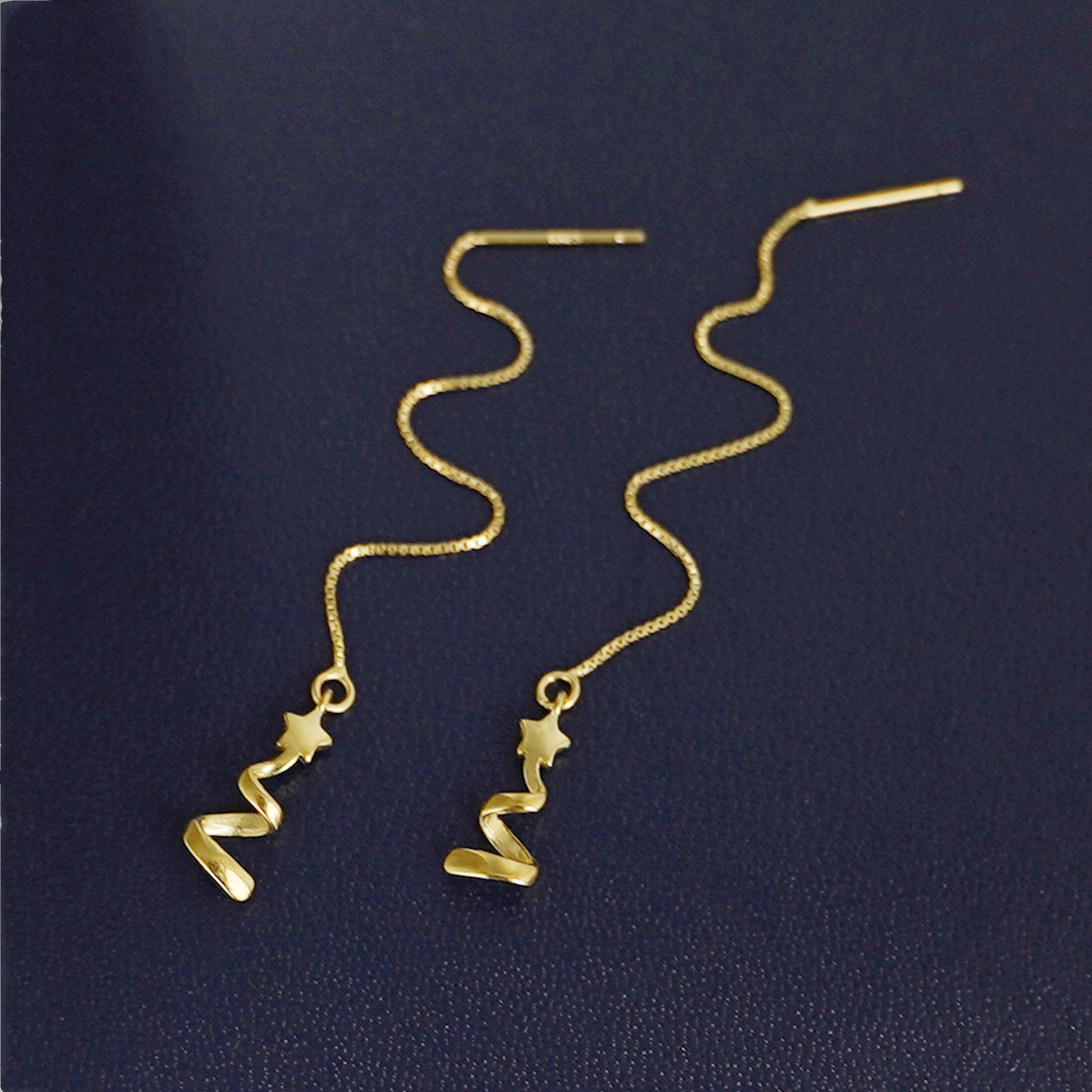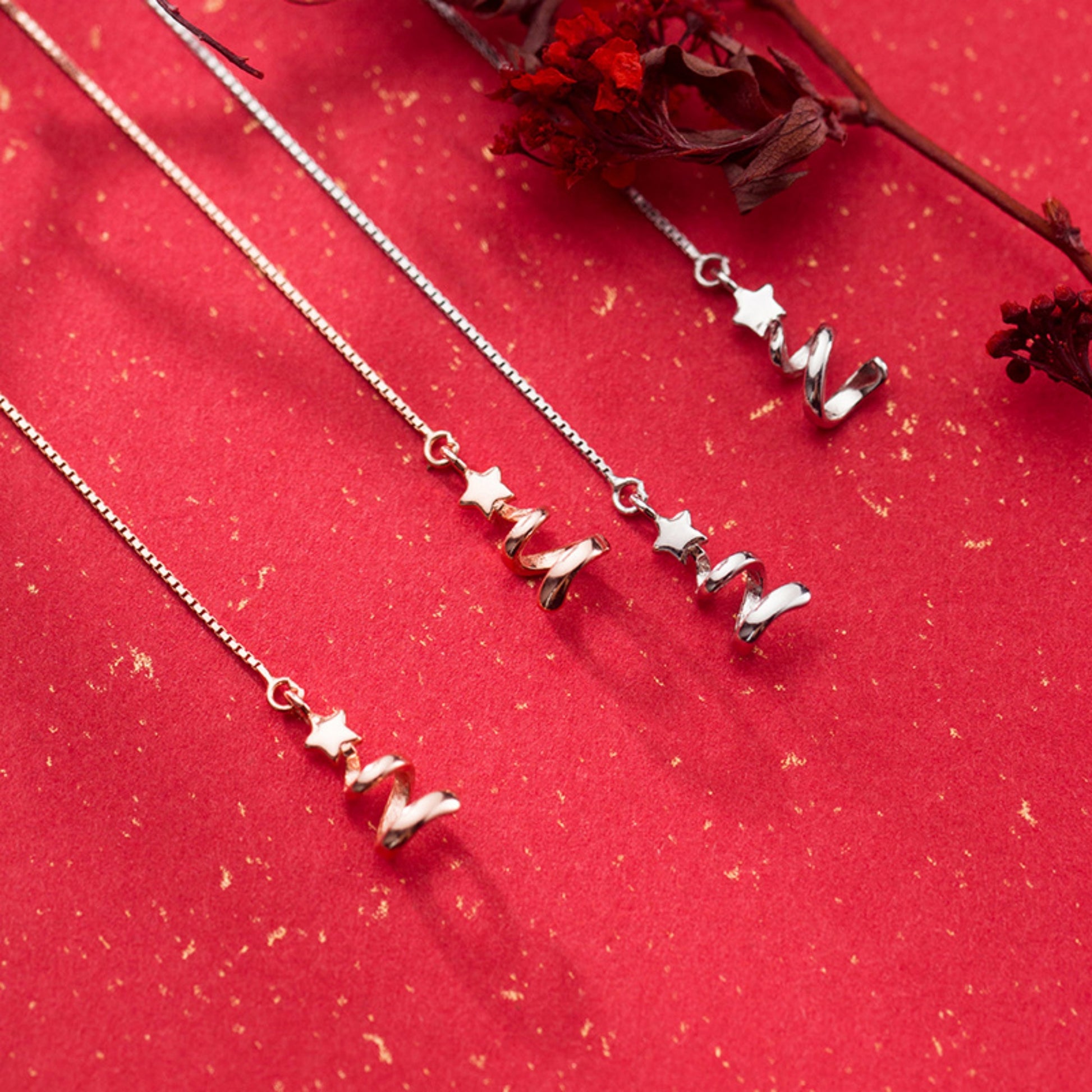 Sterling Silver Star Ribbon Christmas Tree Pull Through Threader Earrings