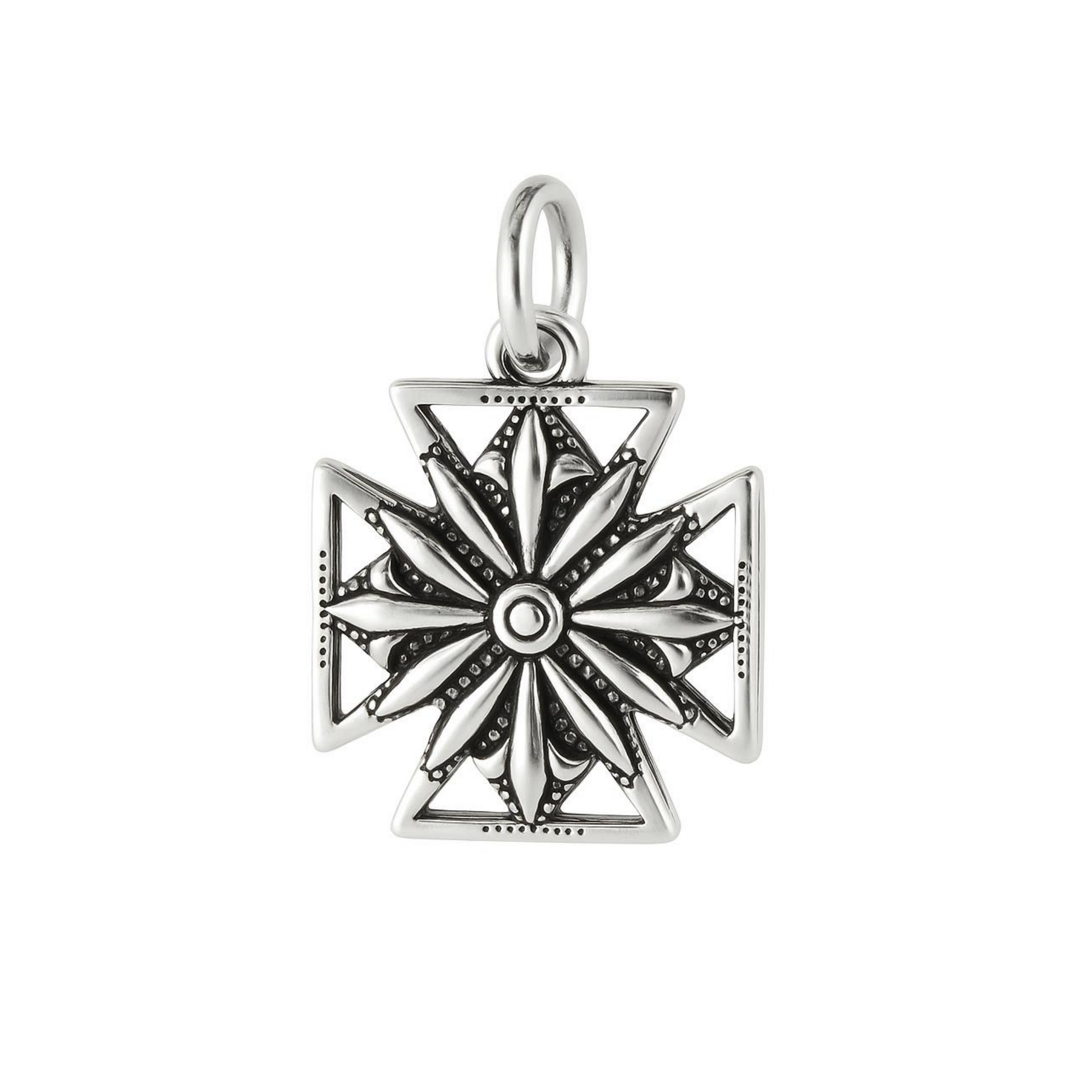 Sterling Silver Oxidised Maltese Cross Fleur De Lis Star Cross Charm Pendant