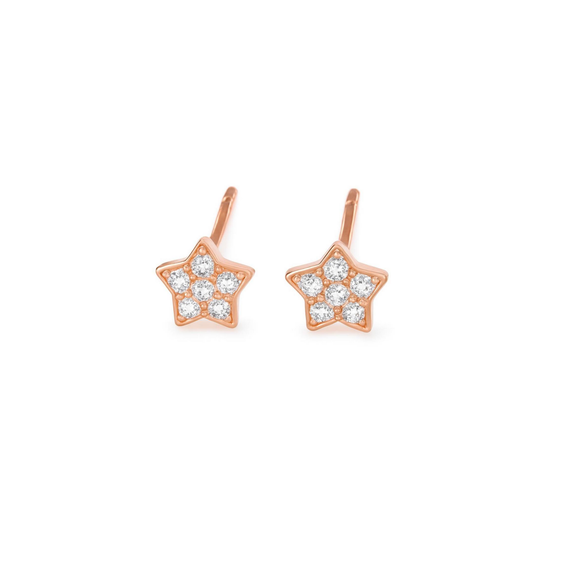 Sterling Silver Paved CZ Star Stud Earrings Rhodium Gold Rose Gold Tones 4 - 7mm