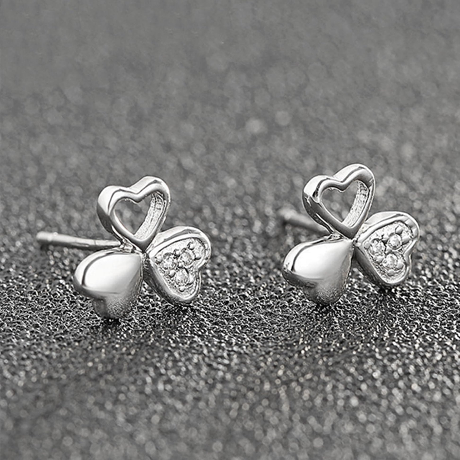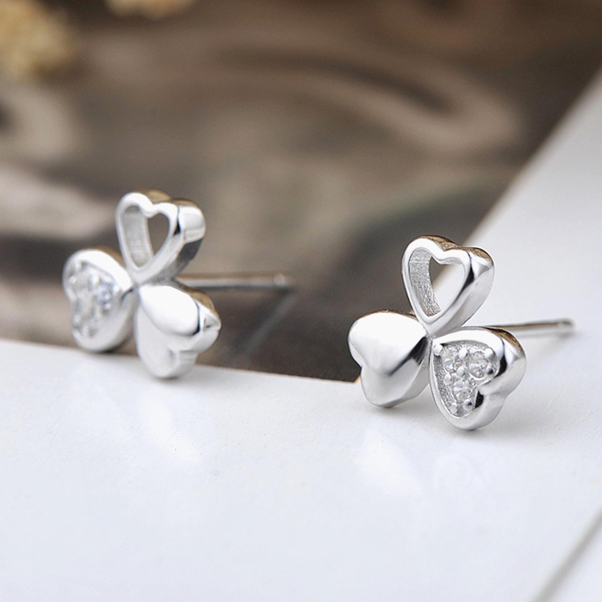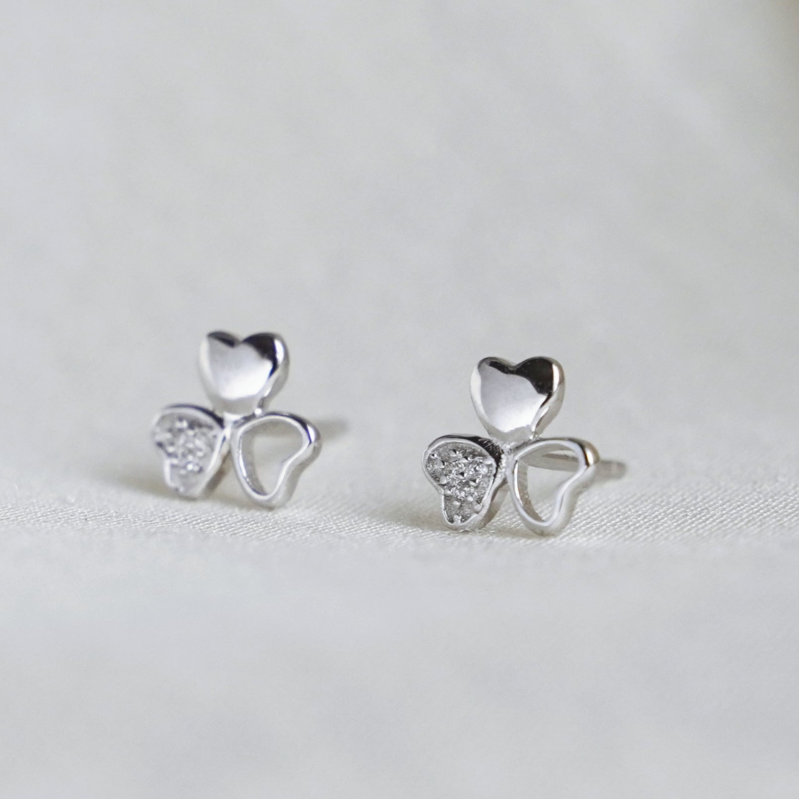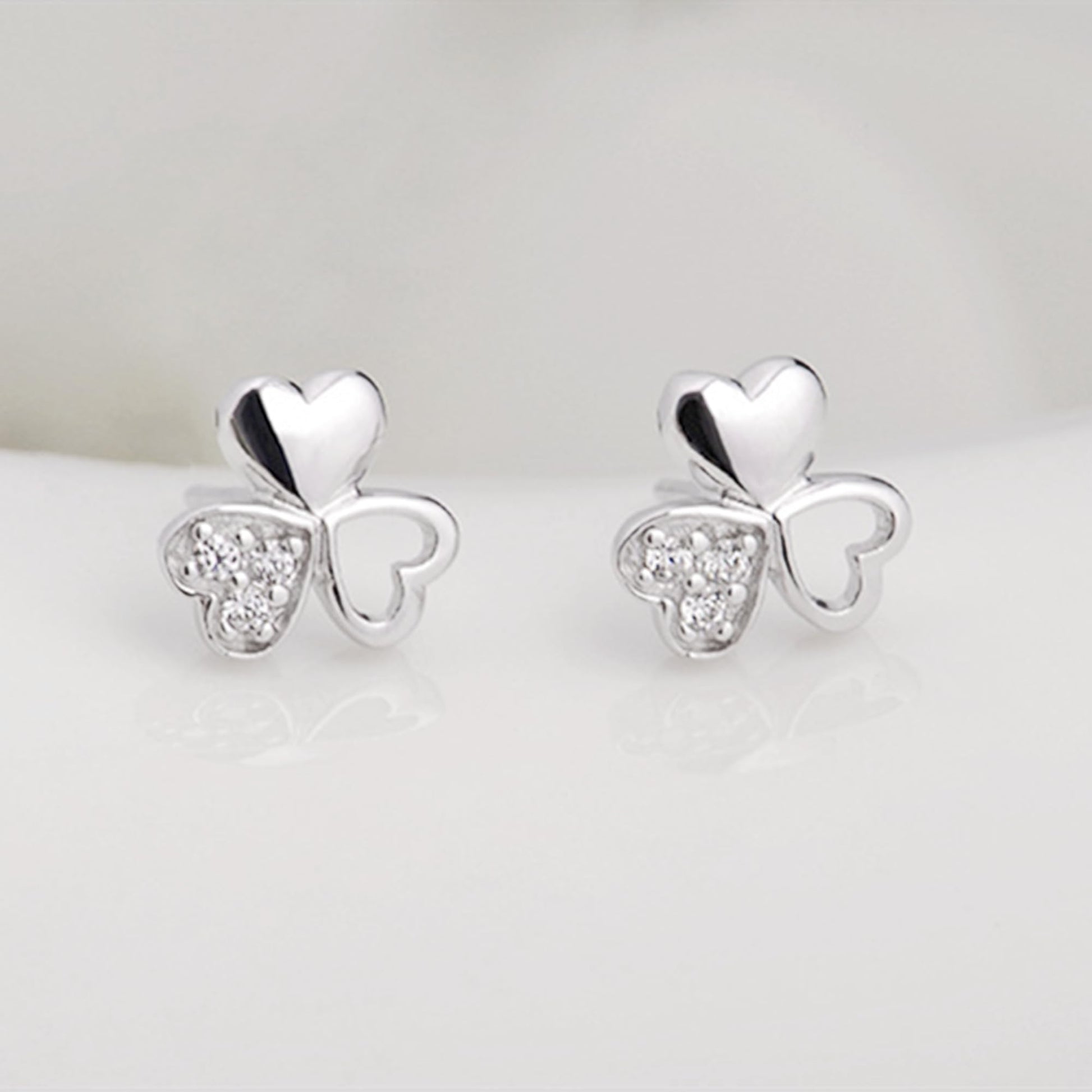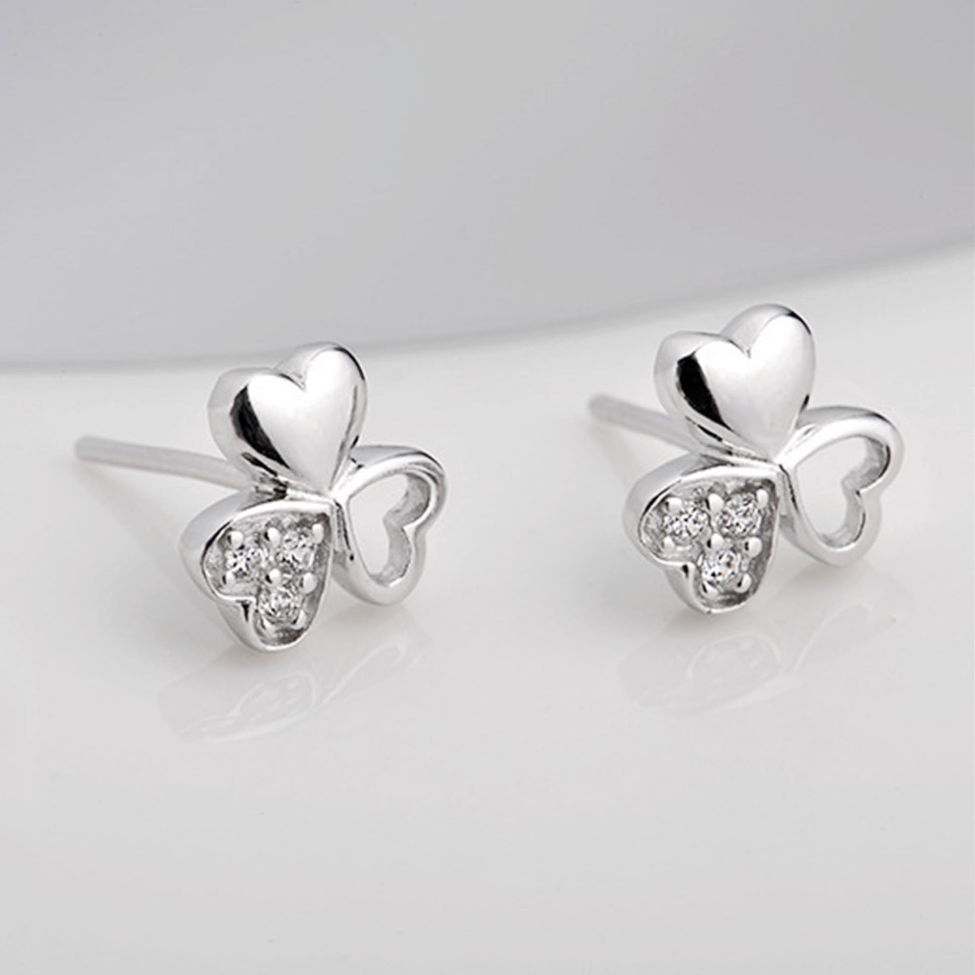 Sterling Silver Shamrock Stud Earrings Paved CZ Lucky Love Jewellery