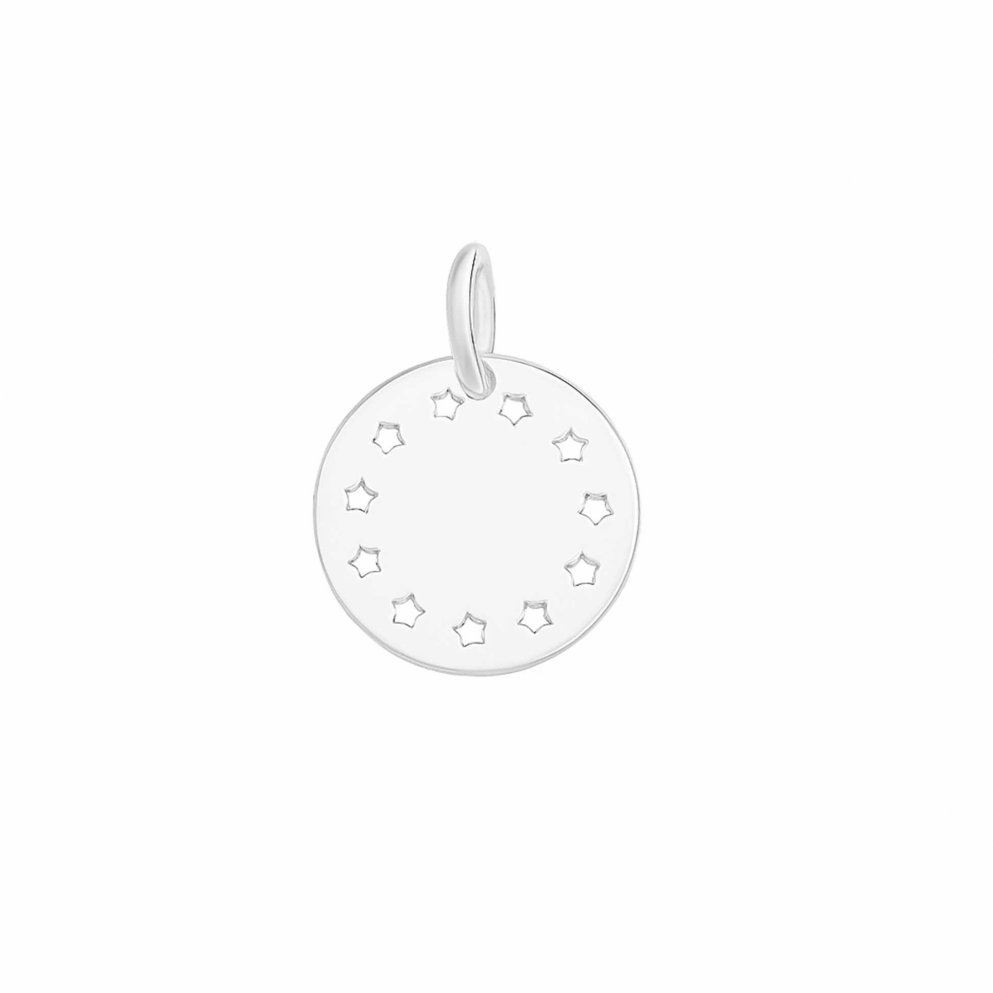 Sterling Silver Shiny Dome Disc Dot Circle Star Hollow-out Round Charm Pendant