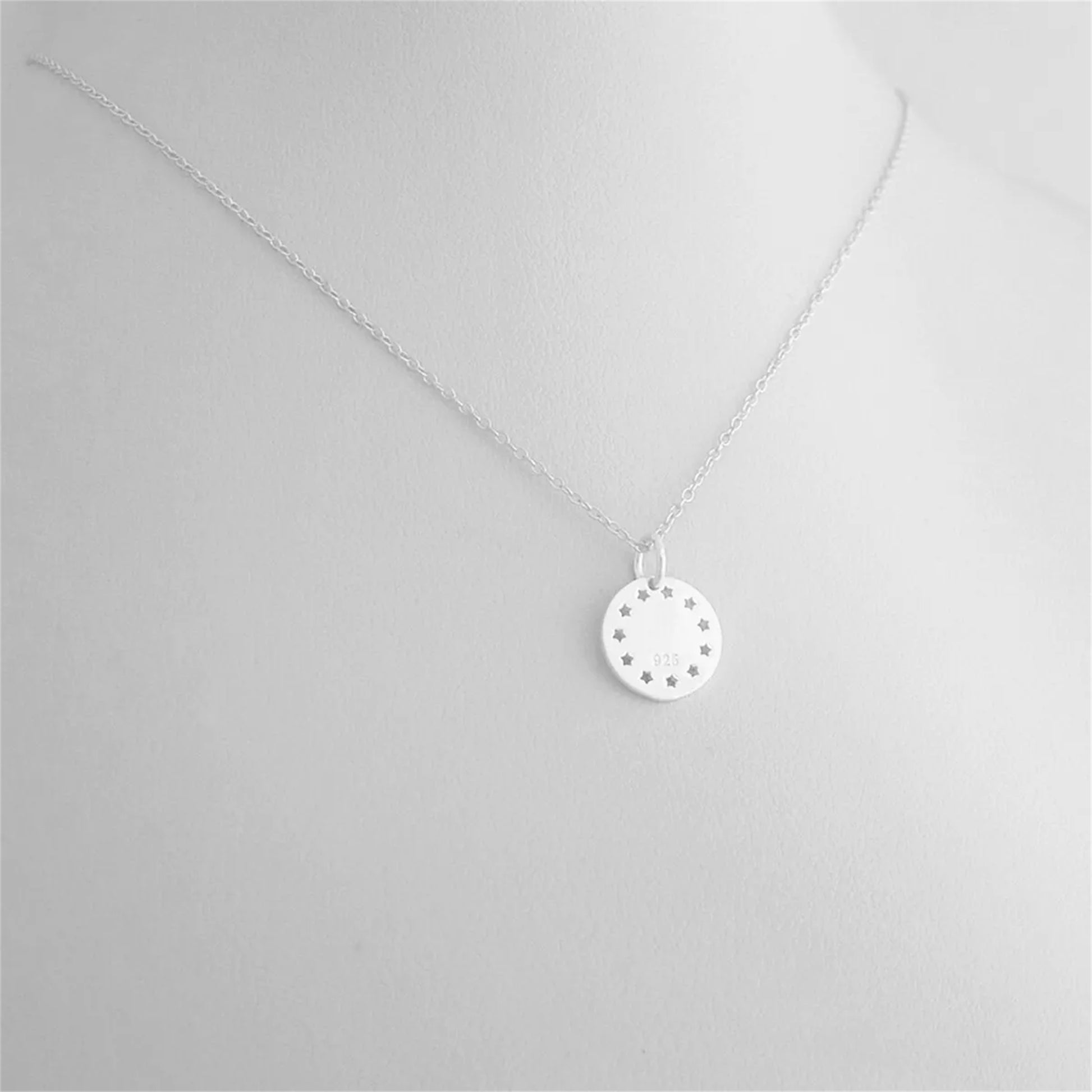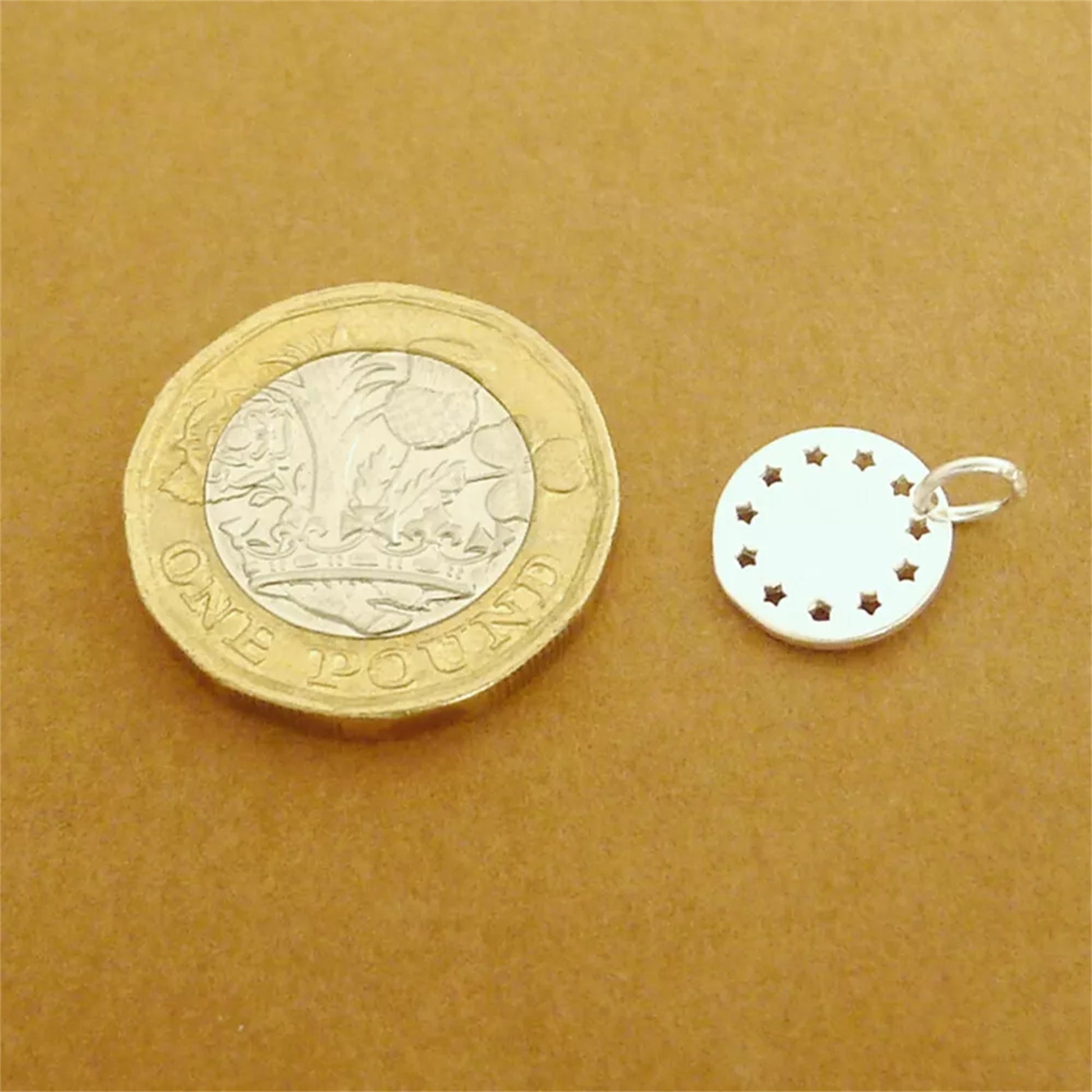 Solid 925 Sterling Silver Shiny Disc Dot Circle Star Lucky DIY Charm Pendant